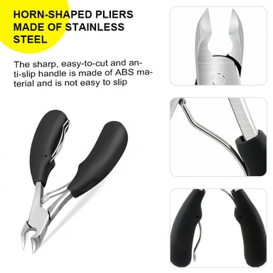 Kraftfull nagelsax i rostfritt stål, som hjälper dig att klippa tjocka, hårda eller inåtväxande tånaglar säkert och utan ansträngning. Det ergonomiska handtaget i slitstarkt ABS-plast ger ett säkert grepp.