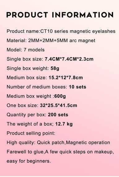 Förbättra dina ögon med detta magnetiska ögonfranssats - CT10-8. Dessa lättapplicerade magnetiska fransar säkerställer både en säker och bekväm passform som håller hela dagen.Läs mer om produkten