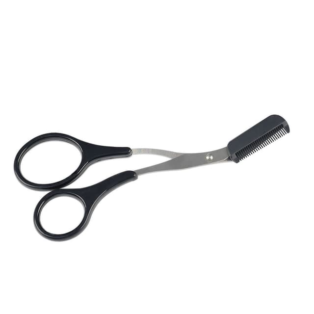 Ögonbrynssaxen är gjord av kolstål med plasthandtag. Den är lätt att rengöra, rostar inte och är formbeständig. Ögonbrynstrimmern har en smart design med integrerad kam för att enkelt och smidigt klippa för långa ögonbryn.