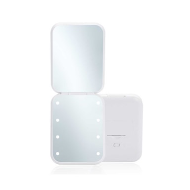Bekväm och kompakt design: Den hopfällbara designen på denna LED-sminkspegel gör den otroligt enkel att förvara och transportera. Dess slimmade profil glider enkelt ner i handväskor, resväskor eller skrivbordslådor, vilket gör den perfekt för resor, arbete eller daglig användning. 180° hopfällbarhet möjliggör också justerbara betraktningsvinklar, vilket säkerställer bekväm användning i olika miljöer. Det skyddande fodralet håller spegeln säker från repor och skador när den inte används och bibehåller sitt orörda skick. Denna spegel erbjuder både bekvämlighet och praktiska egenskaper, vilket säkerställer att du alltid har ett pålitligt skönhetsverktyg till hands.
