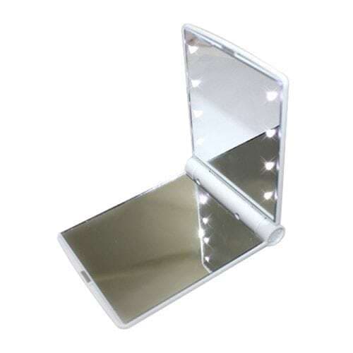 Tillverkad i kraftigt ABS-plast och spegel i glas. Drivs med batteri (ingår) Ihopfällbar med magetisk öppning och stängning. Av/på knapp Storlek: 11,5 X 8,6 X 1,5cm