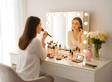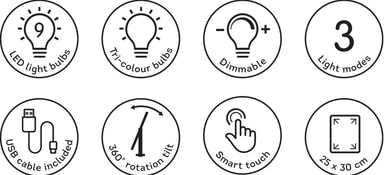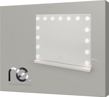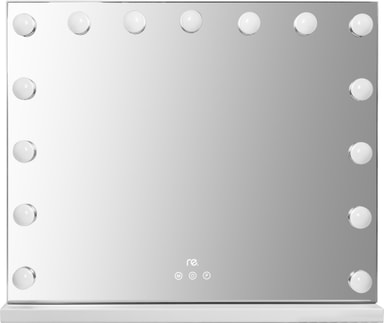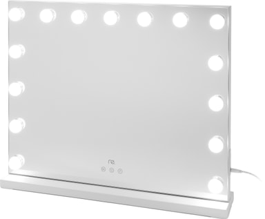 re. Hollywood-spegeln med 15 LED-lampor har touchkontroller, justerbar ljusstyrka och 3 färglägen. Den ger dig ett klart och starkt ljus för perfekt makeup varje gång.Läs mer om produkten