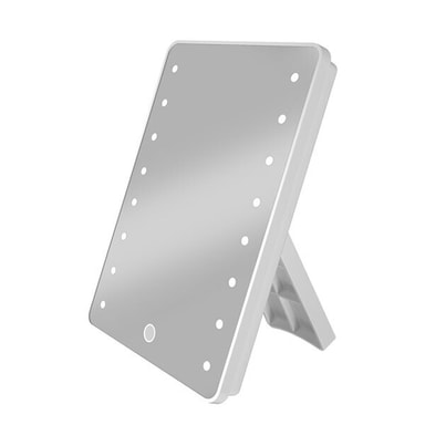 Denna LED-sminkspegel är utrustad med en stabil kickstand som gör att den står säkert på vilken yta som helst, och den kompakta storleken gör den lättplacerad på sminkbordet eller i badrummet. Med både on/off-knapp och dimmerfunktion får du full kontroll över belysningen.