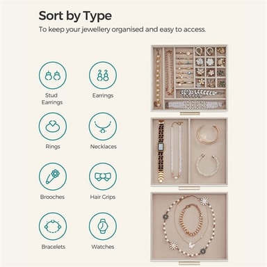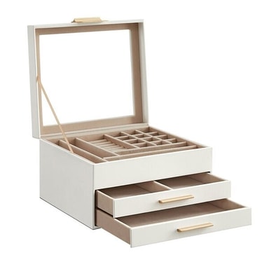 Smyckesskrin med glaslock och 3-lagers förvaring - Vit/Guld