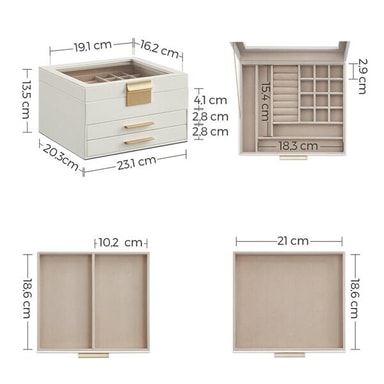 Smyckesskrin med glaslock och 3-lagers förvaring - Vit/GuldLäs mer om produkten
