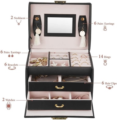 Låsbar: Skrinet går att låsa med nyckel så att enbart du kan få åtkomst till dina smycken.