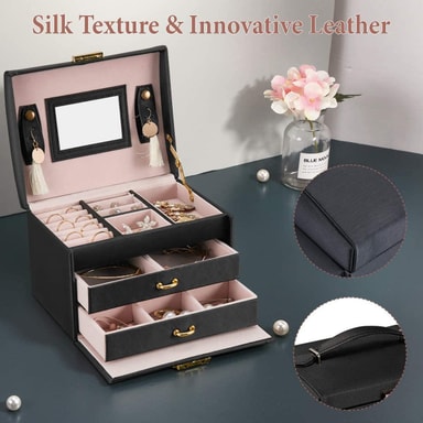 Fina material: Utsidan är gjord av PU-läder som ger en snygg finish till skrinet och inuti är det klätt med mjuk sammetsliknande material.