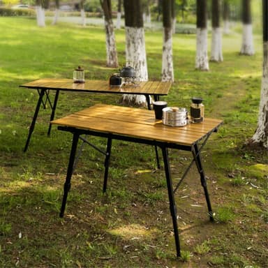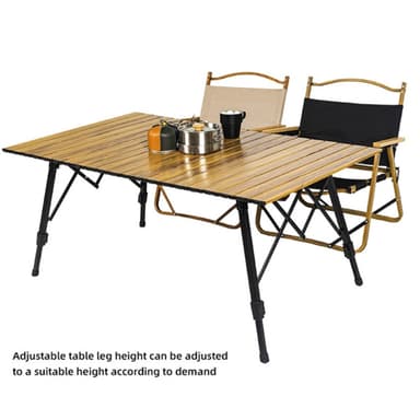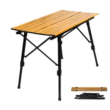 90x52cm Utomhusfällbart bord Träkorn Roll Up Top Aluminiumlegering Lyftande campingbordPerfekt för camping, glamping, picknick, strand, bakgårdar, BBQ, tailgating, husbilsresor, landning, spelkort, uteplatsfest, etc.En plan yta för att placera din spLäs mer om produkten