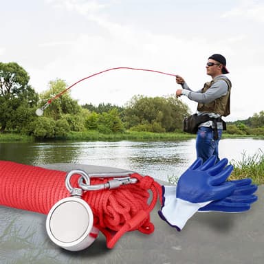 Med 20 meter rep: Skyddshandskar och 20 meter rep ingår för att underlätta ditt arbete. Perfekt för magnetfiske och för lyft och bärgning av olika metallmaterial i vattnet.