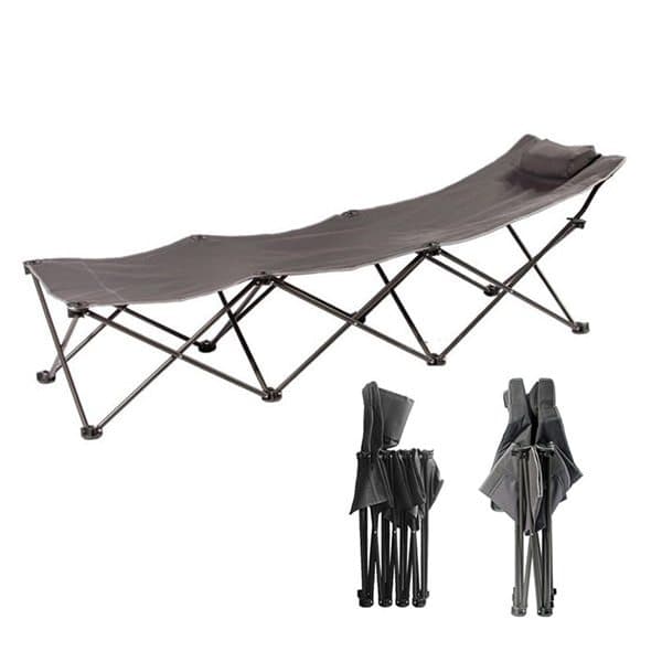 En praktisk fällbar extrasäng med inbyggd kudde som tar minimalt utrymme vid förvaring och transportering. Smidig att ta med sig på resan eller att plocka fram när du ska ha övernattningsgäster. Kommer med förvaringsväska. Färg: mörkgrå Tyg: 600D Oxford tyg Ställning: 16 mm stål rör Vikt: 4.5 kg Mått: 188 x 59 x 52/40 cm Förvaringsstorlek: 38 x 14 x 92 cm Material förvaringsväska: 210D polyester
