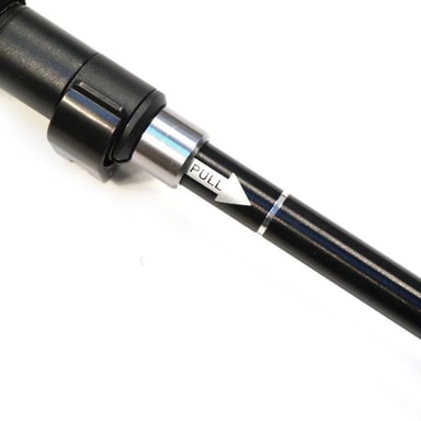 Snabblås av stål: Gångstaven sätts ihop med en enkel knapptryckning, klart på några sekunder.