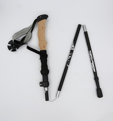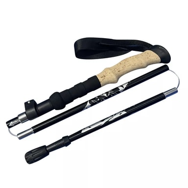 Bra grepp: Vandringsstaven har ett handtag av naturkork och EVA-skum som ger utmärkt komfort och stötdämpning och som minskar vibrationer och absorberar svett. Med praktisk handledsrem.