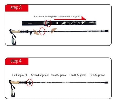 Vandringsstav för många miljöer: Trekkingstaven har fem sektioner och en justerbar längd mellan 110-125 cm. En vandringsstav ger dig bättre balans och stöd på ojämna och leriga eller hala underlag.