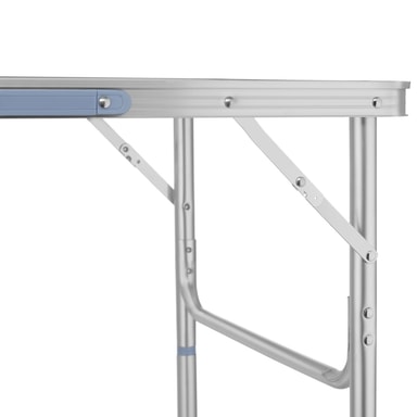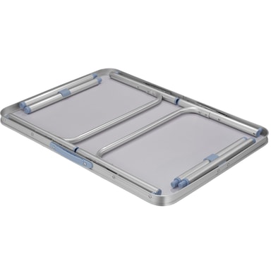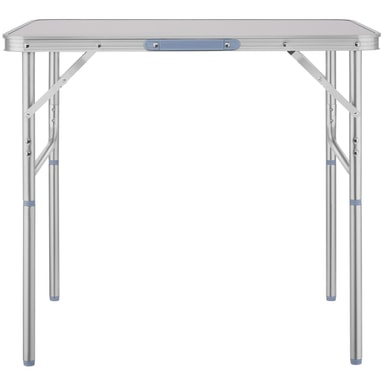 Detta praktiska campingbord i aluminium kan användas flexibelt, i trädgården, på stranden, festivaler, campingutflykter, överallt där du behöver ett bord som är lätt att transportera och montera. Detta campingbord monteras enkelt, tack vare sin praktiska fällbara stomme och ytlamellerna. I den medföljande bärväskan kan vårt campingbord förvaras kompakt och även enkelt transporteras. Nu är du redo för camping!