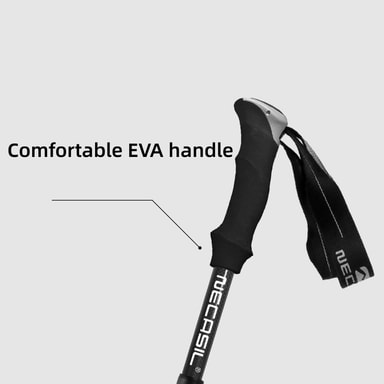 Vandringsstavarna är huvudsakligen gjorda av kolfiber, som är känt för sin otroliga lätthet. Det låter dig röra dig snabbare och snabbare samtidigt som du anstränger dig mindre. Kolfiber är också stötdämpande och minimerar påverkan på lederna avsevärt.