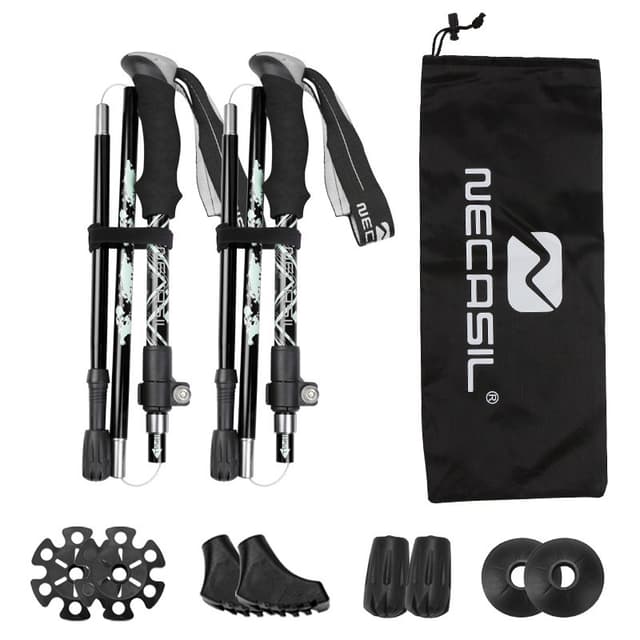 Vandringsstav för många miljöer: Trekkingstaven har fem sektioner och kan enkelt fällas ihop till liten storlek. En vandringsstav ger dig bättre balans och stöd på ojämna och leriga eller hala underlag. Flera olika gummifötter och spetsar medföljer för att kunna optimera staven för underlaget.