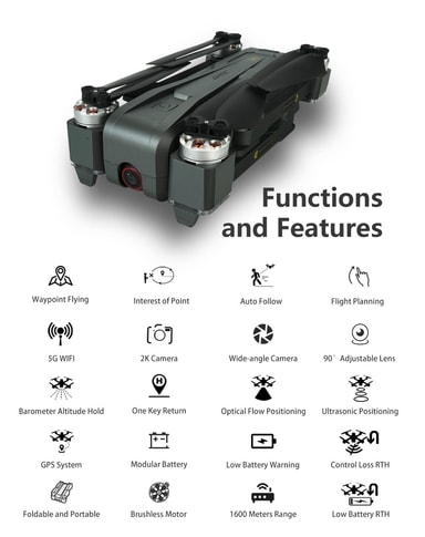Smart: Autoretur, Gesture control, Follow me, Circle flight, track flight, hovra