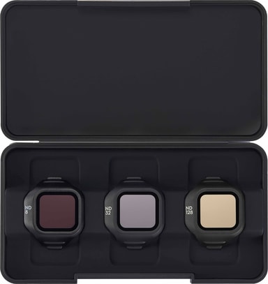 DJI Mini 5 Pro ND filterset innehåller ND8-, ND32- och ND128-filter. Dessa filter hjälper dig att få bättre kontroll i ljusa förhållanden. Perfekt för att fånga detaljrika foton och videos med din Mini 5 Pro.