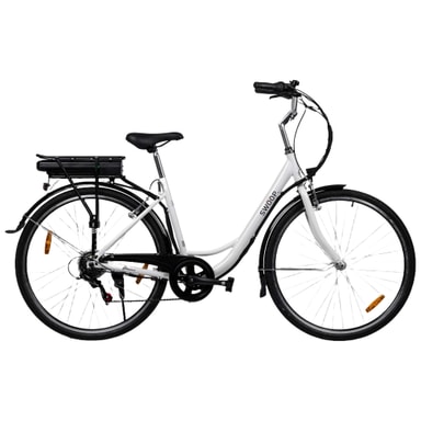 Avsedd användning: pendlingscykling, stadscykling, fritidscykling Däckstorlek: 28"" Rekommenderad höjd på användaren: 165 - 185 CM Lastkapacitet: 120 kg Cykelvikt: 22,7 kg Monteringsgrad: 95 % (monteras endast framdäck, styre, frontljus, pedaler) Garanti: 2 år, batteri 1 år. (Garantien täcker inte slitage av förbrukningsdelar såsom kedjor, kedjehjul, bromsbelägg etc. på grund av normal användning.)