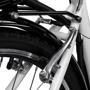 Bromsar och strålkastare garanterar säkerhet och tillförlitlighet: Bromsarnas prestanda och tillförlitlighet är viktiga säkerhetsfaktorer vid cykling. Elcykeln Swoop Classic har V-bromsar, dvs. fälgbromsar. Swoop Classic har LED-lampor både fram och bak som hjälper dig att cykla säkert i mörkret.