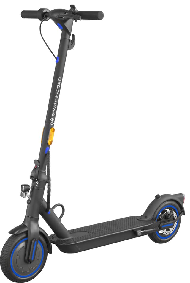 Med E-way elscooter E2540 kan du ta en tur ner på stan, till arbetet eller skolan. Scootern kan nå en hastighet på upp till 20km/h och kan åka 40 km per laddning. Fäll ihop scootern och ta med den på bussen eller tåget, eller lägg den i bakluckan på bilen. Dessutom har scootern en smart app där du kan ställa in exempelvis hastighet eller bromsstyrka, eller ta reda på hur mycket batteri du har kvar.