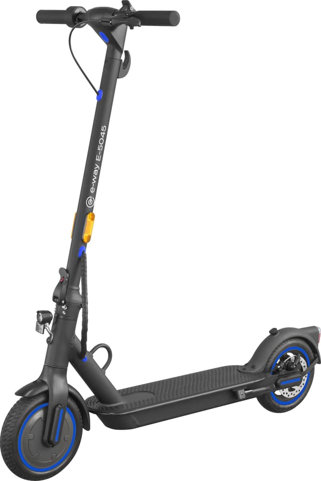 Med E-way elscooter E5045 kan du ta en tur ner på stan, till arbetet eller skolan. Scootern kan nå en hastighet på upp till 20 km/h och kan åka 45 km per laddning. Fäll ihop scootern och ta med den på bussen eller tåget, eller lägg den i bakluckan på bilen. Dessutom har scootern en smart app där du kan ställa in exempelvis hastighet eller bromsstyrka, eller ta reda på hur mycket batteri du har kvar.