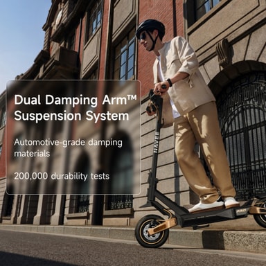 Denna sparkcykel har ett högkapacitetsbatteri på 46,8V som levererar tillräckligt med energi för en imponerande räckvidd på 90 km. Den stödjer Flash Charge för snabbare laddning och har en modulär design där ett externt batteri kan läggas till för att fördubbla den totala räckvidden till 146 km.