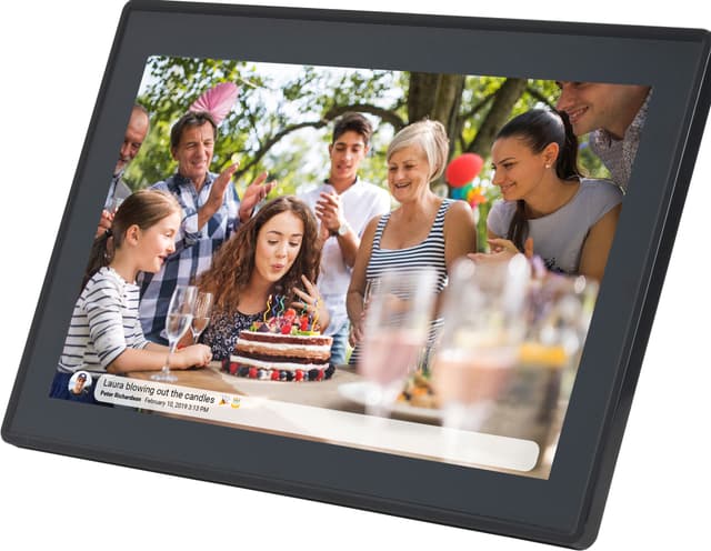 15.6" WiFi-skärmen har en ljus IPS-pekskärm med Full HD-upplösning. Ägaren av ramen kan interagera med de inkommande bilderna, gilla eller skriva en kommentar även utan ett sociala medie-konto.