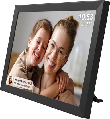 Sandstrøm Frameo digital fotoram har en 10,1" Full HD IPS-pekskärm för levande bilder. Den har 32 GB minne, WiFi för delning via Frameo-appen, och automatisk rotation för vägg- eller skrivbordsmontering.Läs mer om produkten