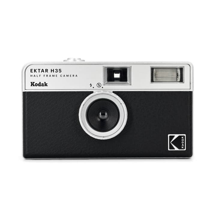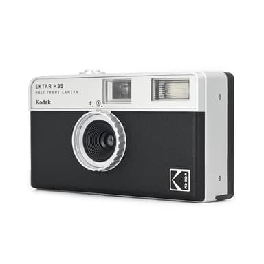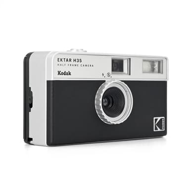 Kodak H35 kamera för film erbjuder retrostil som tar dig tillbaka till 60-talet. Dess halvbildsformat optimerar filmanvändningen och de relaterade kostnaderna. Den inbyggda blixten ger tydliga bilder även i svagt ljus.