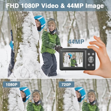 44MP och 1080P digitalkamera: Denna kamera har en kraftfull 44MP bildupplösning och 1080P videoinspelningskapacitet. Detta säkerställer att varje bild och video du tar är detaljerad och verklighetstrogen, för att bevara dina värdefulla minnen på bästa sätt.