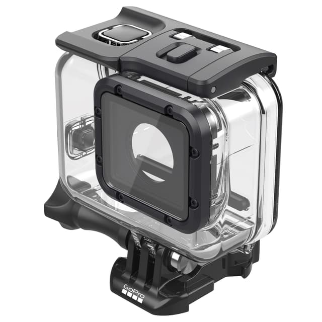 GoPro Super Suit vattentätt skal skyddar din Hero 5/6/7 när du dyker, åker skidor eller all många andra sorters extremsporter och aktiviteter. Skalet har två vattentäta luckor som fungerar tillsammans med Floty. Dessutom har skalet en glaslins som ser till att bilderna är skarpa i alla situationer.