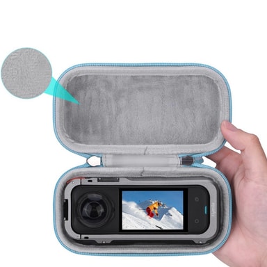 Mjukt foder, skonsam förvaring: Insidan av väskan är fodrad med ett mjukt och skonsamt material som skyddar kameran från repor och slitage. Det mjuka fodret fungerar som en kudde som absorberar vibrationer och minskar risken för skador på kamerans yta. Detta säkerställer att din Insta360 X5 förblir i perfekt skick, även efter frekvent användning och transport.