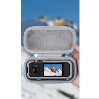 Kompakt design, bärbar bekvämlighet: Den kompakta och lätta designen gör väskan enkel att bära med sig. Den tar minimalt med plats i din ryggsäck eller väska, vilket gör den perfekt för resor och äventyr. Den medföljande karbinhaken gör det enkelt att fästa väskan på din ryggsäck eller bälte, så att du alltid har din kamera nära till hands. Denna bärbarhet gör den till ett oumbärligt tillbehör för alla Insta360 X5-användare.