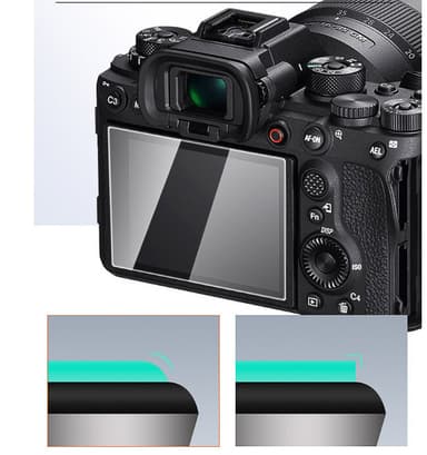 Lätt bubbelfri applicering: Att applicera skärmskyddet är enkelt med sitt statiska klister. Skyddet fäster smidigt på din kameraskärm, vilket säkerställer en bubbelfri och problemfri installationsprocess.