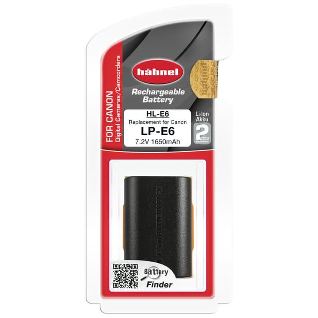 Detta Hähnel HL-E6 Li-ion kamerabatteri kan användas som en ersättare för Canon LP-E6 batteri till Canons digitala kameror och videokameror. Batterikapaciteten är på 1650 mAh vid 7,2 V spänning.Läs mer om produkten