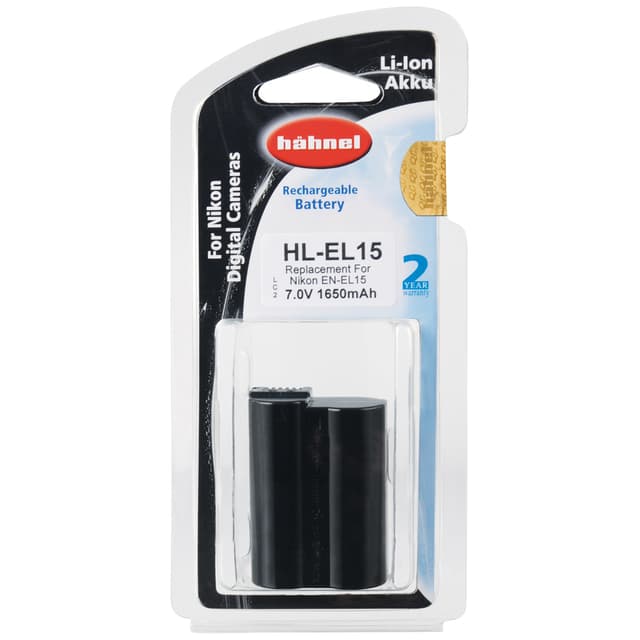 Detta Hähnel HL-EL15 Li-ion kamerabatteri kan användas som en ersättare för Nikon EN-EL 15 batteri till Nikons digitala kameror och videkameror. Batterikapaciteten är på 1970 mAh vid 7,2 V spänning.Läs mer om produkten