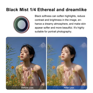 Mjukar upp högdagrar och skuggor: Det mjuka filtret som är kompatibelt med Insta360 GoUltra sprider effektivt ljuset, vilket minskar stark bländning och mjukar upp skuggor för en mer balanserad och visuellt tilltalande bild. Det minimerar intensiteten i ljusa högdagrar, förhindrar överexponering och bevarar detaljer i dessa områden. Samtidigt lyfter det skuggor, avslöjar mer information och skapar en mjukare övergång mellan ljusa och mörka områden. Detta resulterar i ett mer naturligt och filmiskt utseende, vilket förbättrar den övergripande estetiken i dina bilder. Perfekt för utomhusfotografering i starkt solljus eller inomhusmiljöer med stark konstgjord belysning, detta filter hjälper dig att uppnå professionella resultat med din Insta360 GoUltra.