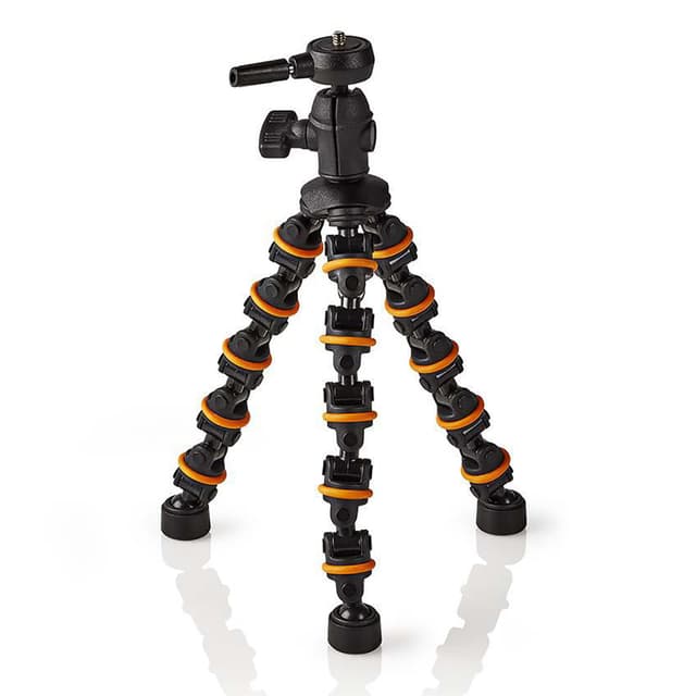 Det här stativet i 6 delar har en maximal höjd på 260 mm. Gummiringar på benlederna för fast grepp Snabbkoppling Positionslås för kameravinkel Glidskyddsbehandlade gummifötter