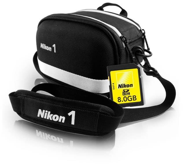 Nikon 1-tillbehörspaket med originalväska (CF-EU06) och ett 8 GB (SDHC) minneskort.