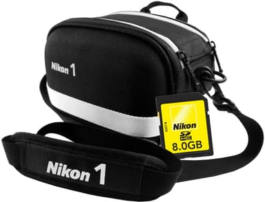 Tillbehörskit som innehåller en stilren väska med axelrem till din Nikon 1 såväl som ett SD-minneskort på 8 GB.Läs mer om produkten