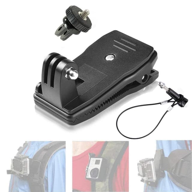 Med den här klämman kan du enkelt fästa din GoPro eller GoPro-liknande actionkamera till din ryggsäck, keps, bälte, jacka och liknande, vilket ger dig fria händer och många fler kameravinklar. Den kraftiga ryggsäcksklämman har ett 360 graders vridbart fäste så att du kan ställa in önskad vinkel.