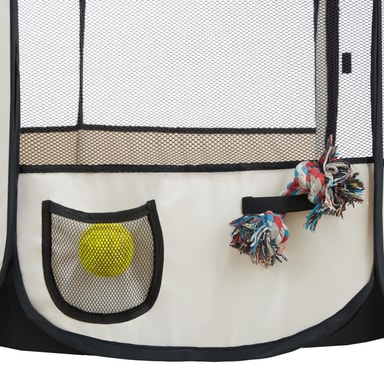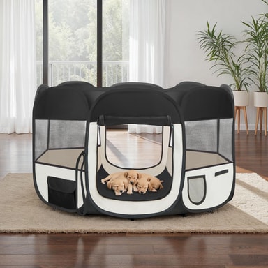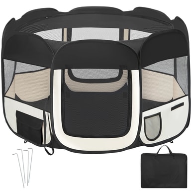 Denna 8-hörniga valphage är perfekt för din hunds behov. Använd den som sovplats, lekplats eller hundgrind både inomhus och utomhus. Tillverkad av polyester för hållbarhet och säkerhet, ger vår valphage dina husdjur en trygg och billig lösning. Passar även för andra djur som kaniner. Med dess säkerhetsgrind kan du vara säker på att dina hundar är skyddade. Oavsett om det är för hundar eller andra husdjur, erbjuder vår valphage en prisvärd lösning för att skapa en trygg hundgård eller valpgård. Ge dina husdjur en säker och bekväm plats att leka och vila!