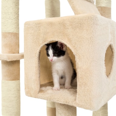 Utrustat med hållbara sisal klöspelare, erbjuder detta katträd en perfekt yta för att hålla katternas klor i gott skick.