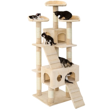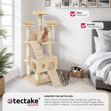 Detta katträd erbjuder allt din katt behöver. Med 2 rymliga hus och 3 plattformar för vila och utsikt, får din katt både komfort och stimulans.