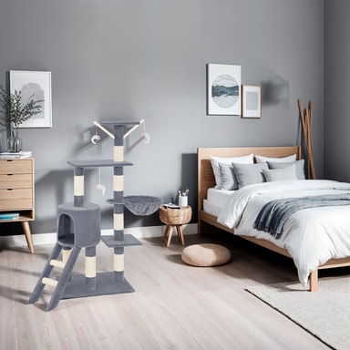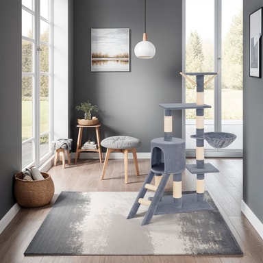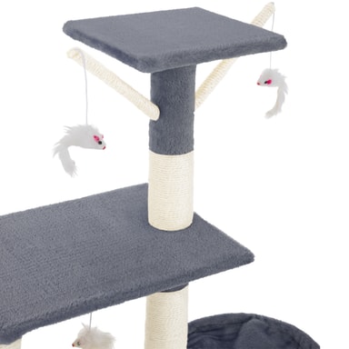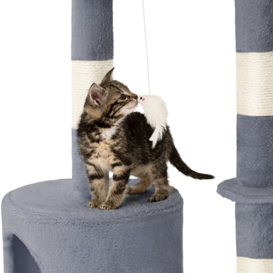 De robusta pelarna på vårt klösträd Dominik är täckta med slitstarkt sisalmaterial, vilket är idealiskt för dina katter att vässa sina klor på. Genom att klösa på dessa pelare kan dina katter hålla sina klor friska och i gott skick, vilket är avgörande för deras övergripande hälsa och välbefinnande. Våra klöspelare är utformade för att stå emot intensiv användning, vilket säkerställer långvarig hållbarhet och nytta.