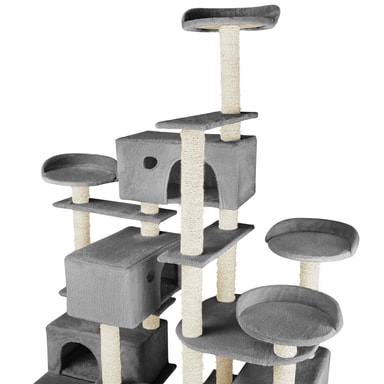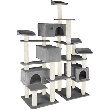 Oavsett om din katt är äventyrlig, gosig eller älskar att klättra: Detta mångsidiga klösträd från tectake uppfyller alla önskemål din katt kan tänkas ha. På flera av klösträdets nivåer kan din fyrbenta älskling leka så mycket den vill. Flertalet sisalstolpar är ideala för att vässa klorna på. Fyra utsiktsplattformar ger katten möjligheten till att ha full översikt. För att kunna gömma sig och gosa finns det dessutom fyra kattkojor. De två golvplattorna ger det höga klösträdet full stabilitet – även när det går vilt till. Gör dina små älsklingar glada och välj detta klösträd från tectake.