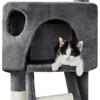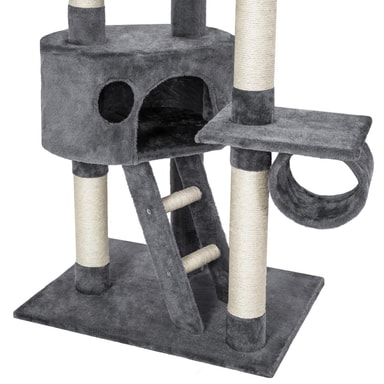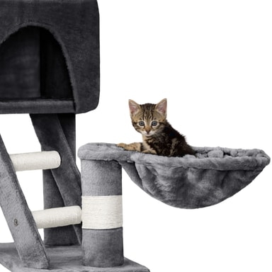 Inget katthem är komplett utan ett katträd, och vår modell har allt din katt behöver för både avkoppling och äventyr. Med två rymliga kattlådor att dra sig tillbaka i, flera olika nivåer och tre plattformar för vila och utsikt, kommer din katt att älska denna multifunktionella kattställning.