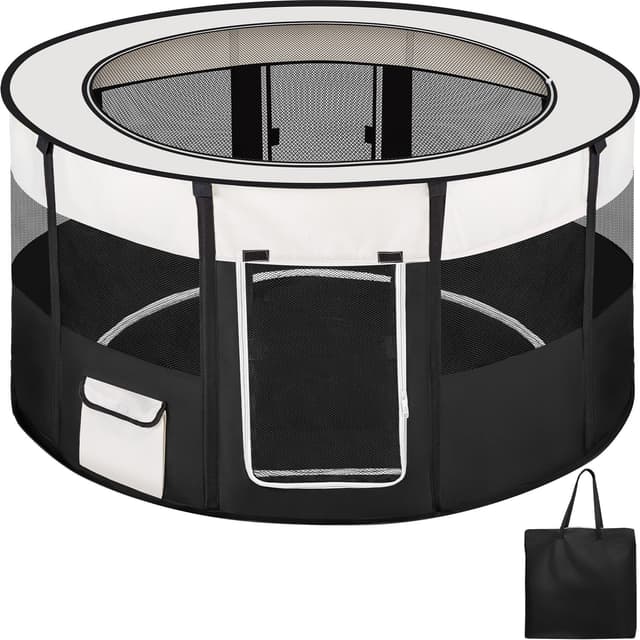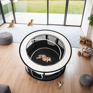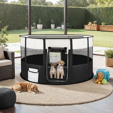 Valphagen Carola från tectake är perfekt för hundvalpar eller andra små djur. valphagen är en skön sovplats, lekplats och även viloplats. Hundgården går lätt att fälla ihop och är utmärkt att ha med sig på resan eller hemma. Mesh-näten ger god luftcirkulation. Valphagen är lätt att rengöra. Praktiskt: Extra fickor för eventuella tillbehör som leksaker osv. finns monterade. Beställ valphagen Carola till dina fyrbenta älsklingar redan idag.