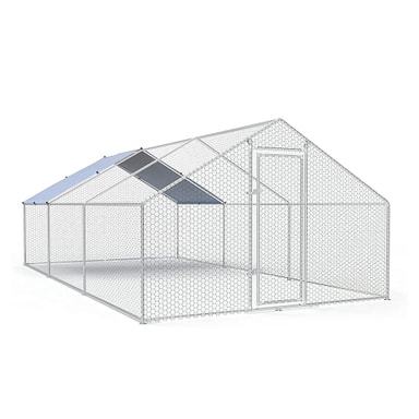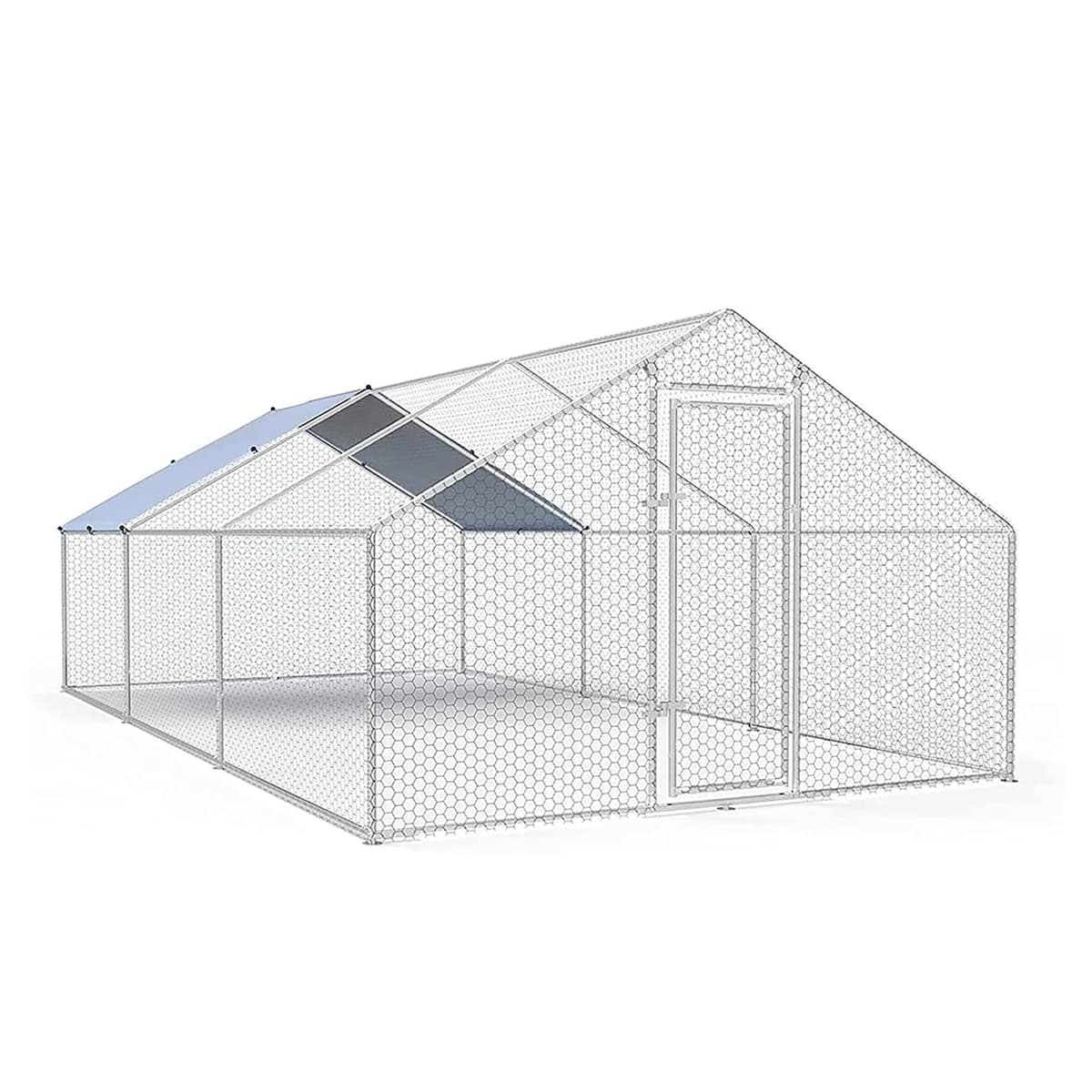 Trekker hönshus har också galvaniserat PVC-belagt metallnät och ramrör, vilket gör den motståndskraftig mot rost och korrosion. Den mörkgröna färgen och det UV- och vattenskyddade taket ser inte bara snyggt ut, utan ger också ytterligare skydd mot elementen.